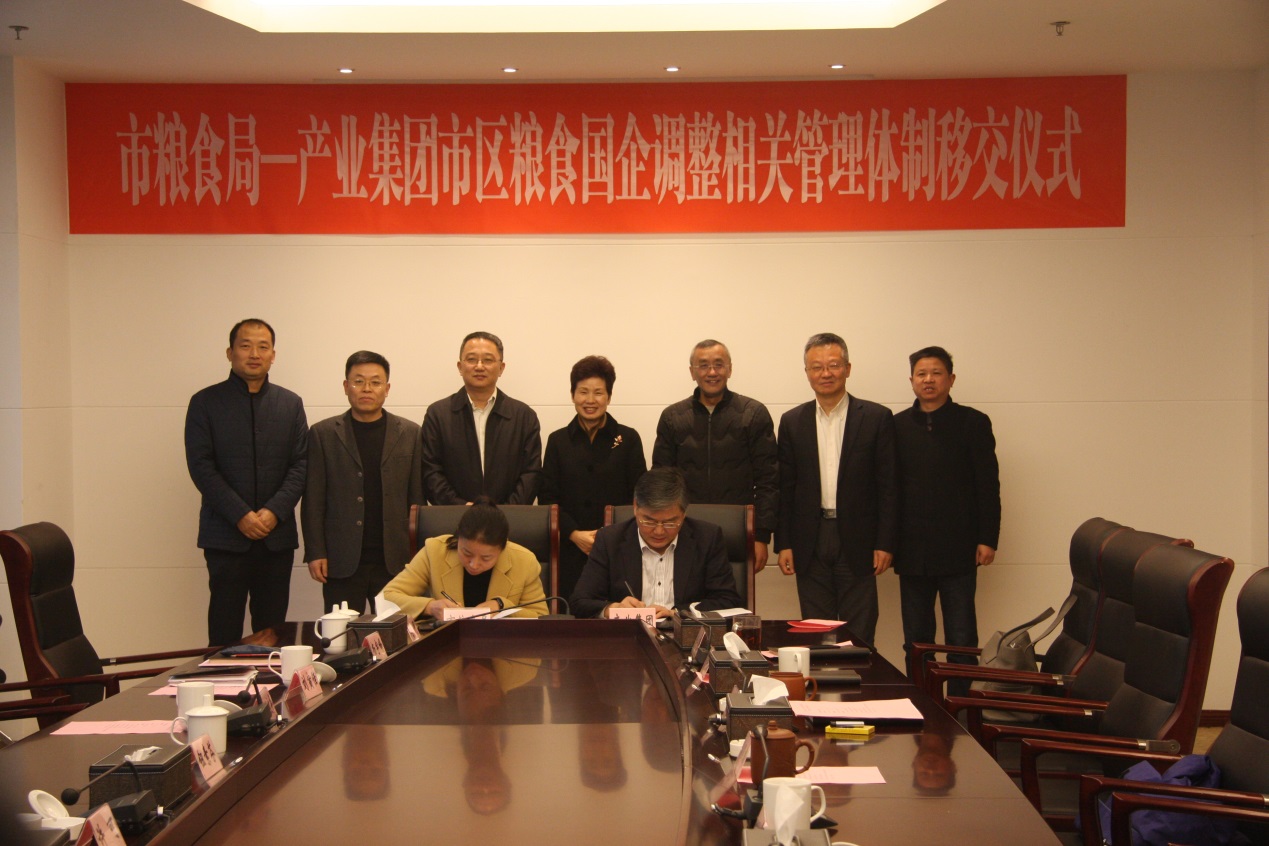 12月27日,财产团体与市食粮局在财产团体二楼集会室停止无锡市食粮国企调剂相干办理体系体例移交确认书具名典礼。市当局副秘书长钮素芬、市国资委主任允许、副主任叶再熙,市食粮局党委布告、局长周学东、副局长吴莉萍、黎平阳,市财务局副局长孙文华,财产团体党委布告、董事局主席蒋国雄、副总裁张晓耕列席具名典礼。