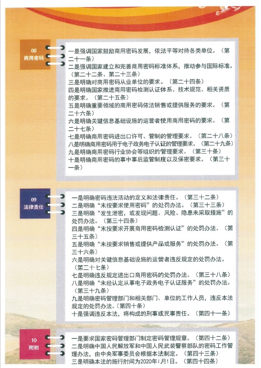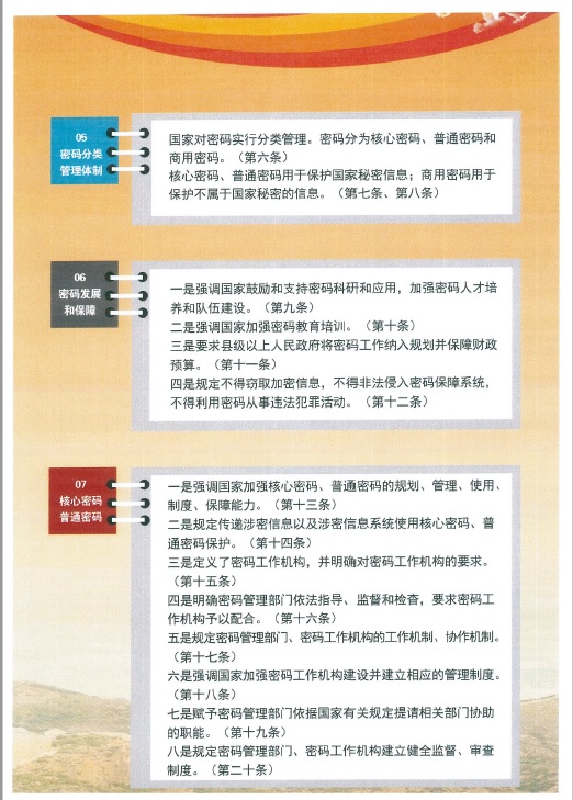 十四条线 国度增(zeng)强焦点暗(an)码(ma)、通(tong)俗(su)暗(an)码(ma)的迷信(xin)计划、办(ban)理和操纵,增(zeng)强轨(gui)制(zhi)扶植,完美办(ban)理方法(fa),增(zeng)强暗(an)码(ma)宁🦩(ning)静(ji𒊎ng)保证才能。